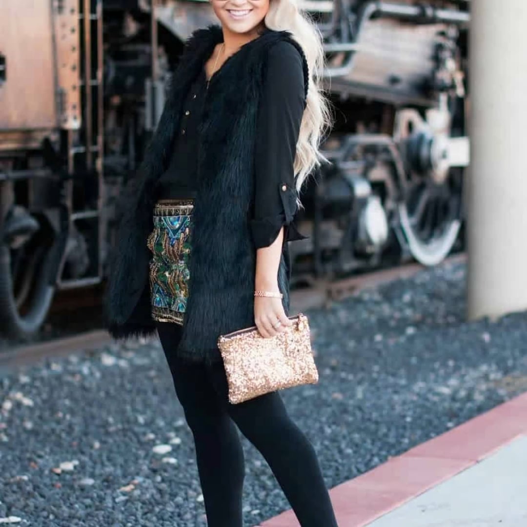 - Ένα faux-fur γιλέκο πάνω από φόρεμα δημιουργεί luxe αποτέλεσμα και είναι πρακτικό για το κρύο.
