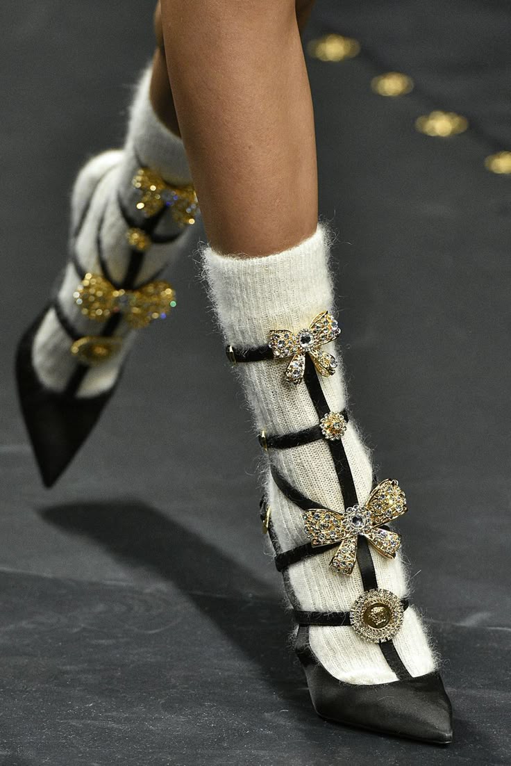 Μπορεί κάποτε η ιδέα των ψηλών τακουνιών, σύμβολο θηλυκότητας και σεξουαλικότητας, συνδυασμένων με κάλτσες, να θεωρούνταν ακραίο στιλιστικό ατόπημα, όμως μετά την επίδραση της μόδας του δρόμου και των fashion bloggers, αυτή ακριβώς η ασυνήθιστη αντίθεση ανάμεσα σε chic και casual μεταμορφώθηκε σε μία από τις πιο καυτές τάσεις στα παπούτσια. Οι κάλτσες – είτε ribbed ή glittery είτε χοντρές πλεκτές – προσδίδουν στα heels χαρακτήρα και μια δόση παιχνιδιάρικης επανάστασης. Φέτος τα heels με κάλτσες έρχονται πάλι στο προσκήνιο, αποδεικνύοντας ότι η μόδα αγαπά πάντα το απρόβλεπτο.