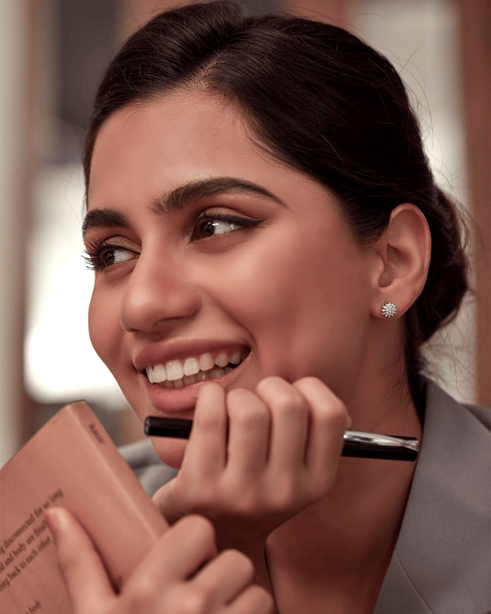 ● Φόρεσε λευκό πουκάμισο + navy παντελόνι + μπεζ σακάκι + loafers + χρυσά σκουλαρίκια.