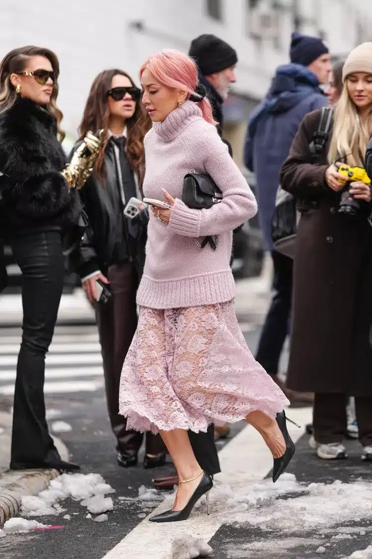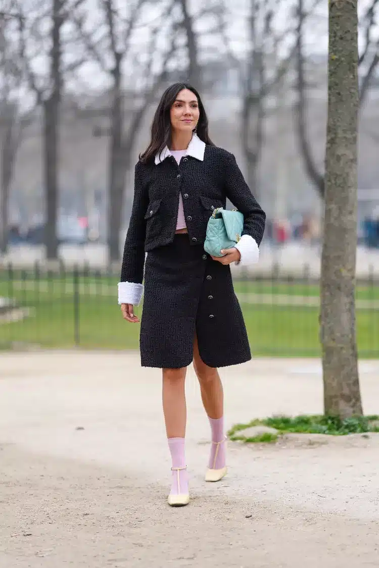 Ξέχνα το total black ως default. Το μαύρο παραμένει μια ασφαλής επιλογή — αλλά το ενδιαφέρον βρίσκεται στις υφές και τις σιλουέτες. Αυτό δίνει βάθος χωρίς να γίνεται αδιάφορο ή “πολύ”.