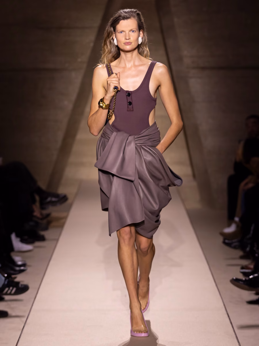 Το SS26 αλλάζει τον τρόπο που σκεφτόμαστε τα εσώρουχα: τα bras και bustiers δεν είναι πια κρυμμένα κάτω από τα ρούχα — βγαίνουν στην επιφάνεια. Οι σχεδιαστές συνδυάζουν σαγηνευτικά κομμάτια εσωρούχων με tailored παντελόνια ή δερμάτινες φούστες, μετατρέποντας το lingerie σε fashion statement.